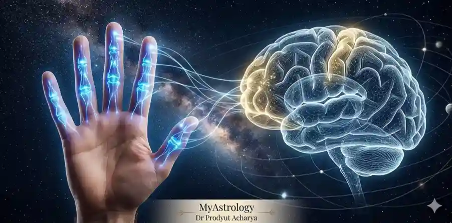 হস্তরেখা শাস্ত্র বা কিরোম্যান্সি (Chiromancy) কেবল ভবিষ্যৎ কথন নয়, এটি একটি জৈবিক সংকেত বিজ্ঞান। আধুনিক নিউরোসায়েন্স আমাদের বলে যে, আমাদের হাতের আঙুলগুলো সরাসরি মস্তিষ্কের Somatosensory Cortex-এর সাথে সংযুক্ত। আশ্চর্যের বিষয় হলো, মস্তিষ্কের যে অংশটি আমাদের চিন্তা, পরিকল্পনা এবং ব্যক্তিত্ব নিয়ন্ত্রণ করে, তার প্রতিফলন ঘটে আমাদের হাতের আঙুলের গঠন ও পর্বে। প্রাচীন ঋষিরা এই স্নায়বিক জটিলতাকে পাঁচটি আঙুলে পাঁচটি গ্রহের (শুক্র, বৃহস্পতি, শনি, রবি, বুধ) শক্তিরূপ হিসেবে চিহ্নিত করেছিলেন।