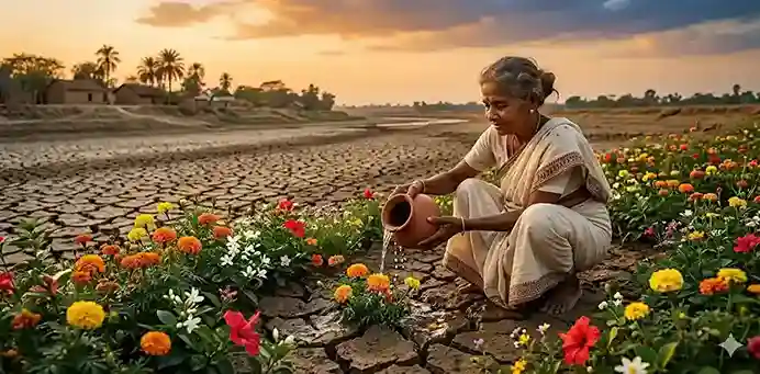 একজন বলল—“শুকনো নদী—আমার ফসলের জল নেই।”